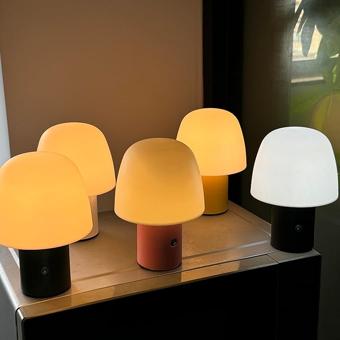 - 【Portable Design】Modern and simple mushroom shape design, light and portable. Rechargeable table lamp battery powered, the cordless table lamp can meet your various needs in various scenarios. It can also be easily moved to any place where lighting is needed.