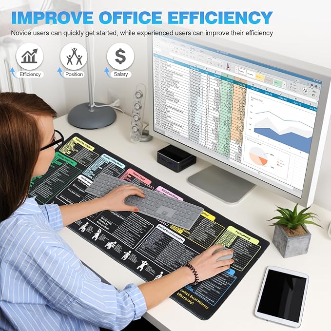 - XL 31.5”X11.8” EXCEL DESK MAT — ORGANIZE YOUR WORKSPACE Take control of your Excel - focused desk! This large mouse pad fits your keyboard, mouse, and notebook—keeping your workspace neat. The smooth fabric ensures precise control for data entry, formula work, or pivot table creation. One desk mat for keyboard and mouse means an organized space and faster Excel workflow.