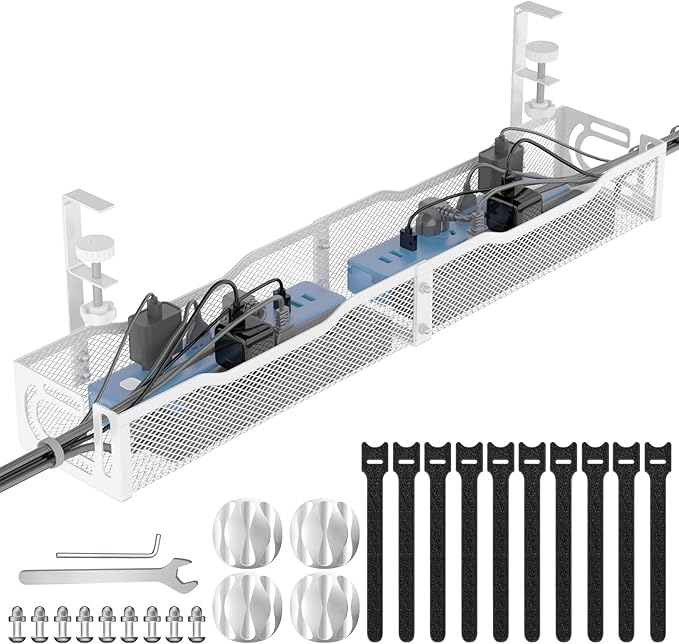- 【Safety Protection】The cable organizer keeps plugs away from your children and pets, alleviating concerns about tripping hazards. Utilizing the Foellstoe under desk storage saves valuable space and facilitates effortless cable management and wire protection. The mesh design prevents dust accumulation and effectively prevents safety incidents caused by tangled wires.