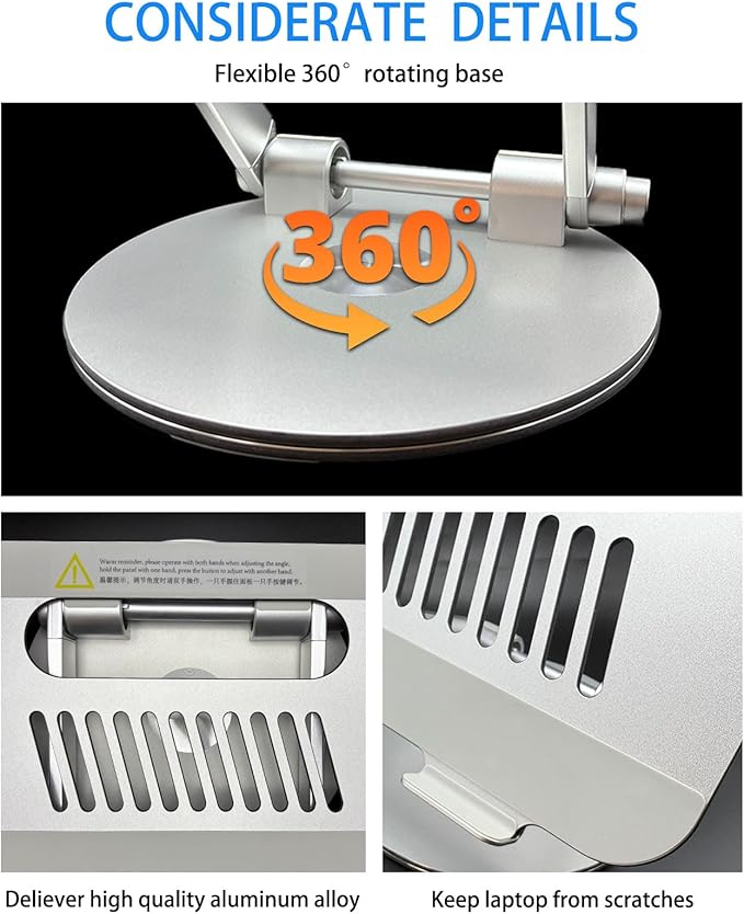 - 【Stable & Reliable】-This laptop stand is made of Aerospace Grade Metal, which makes it super sturdy and support max weight 17.6lbs/8kg; Equipped with our factory's unique alloy shaft technology, which has been tested more than 10,0000+ times, it is more flexible and durable than ordinary metal laptop stands, perfect office laptop desk stand.
