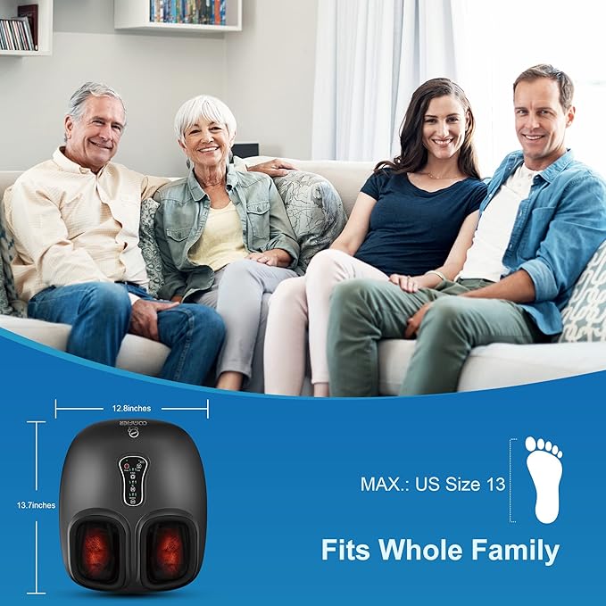 - All-in-One Foot Relief – The Comfier foot massager offers customizable settings including shiatsu, rolling, heat, full-foot compression, and toe-area vibration for a complete and rejuvenating massage experience.