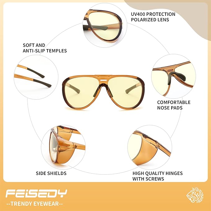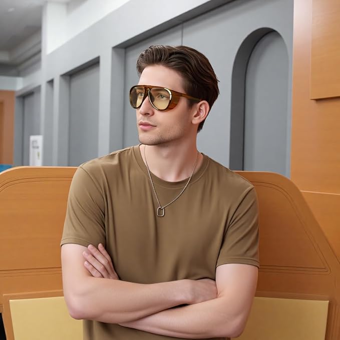 - Retro Double Bridge Style Steampunk Design -The unique sport blue light glasses is inspired by the classic steampunk design, classic double bridge style shades with side shields thar are strikingly dope .Oversized round glasses with big frames perfectly modify face shape for a stylish look