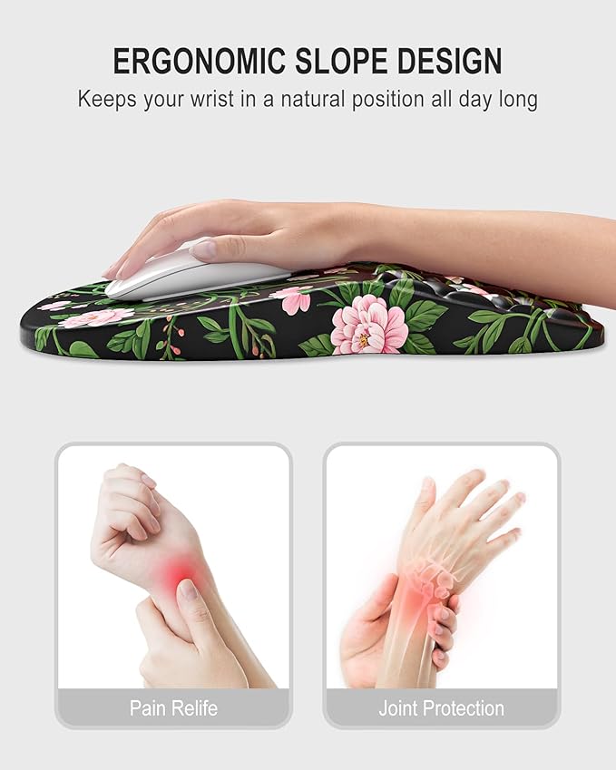 - Ergonomic Slope Design: The innovative 8-degree slope keeps your wrist and palm naturally straight, which can reduce pressure and pain on your wrist caused by prolonged inverted mouse usage, and improve carpal tunnel syndrome (CTS)