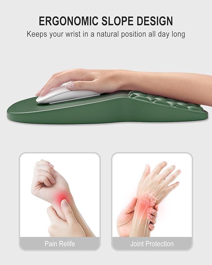 - Ergonomic Slope Design: The innovative 8-degree slope keeps your wrist and palm naturally straight, which can reduce pressure and pain on your wrist caused by prolonged inverted mouse usage, and improve carpal tunnel syndrome (CTS)