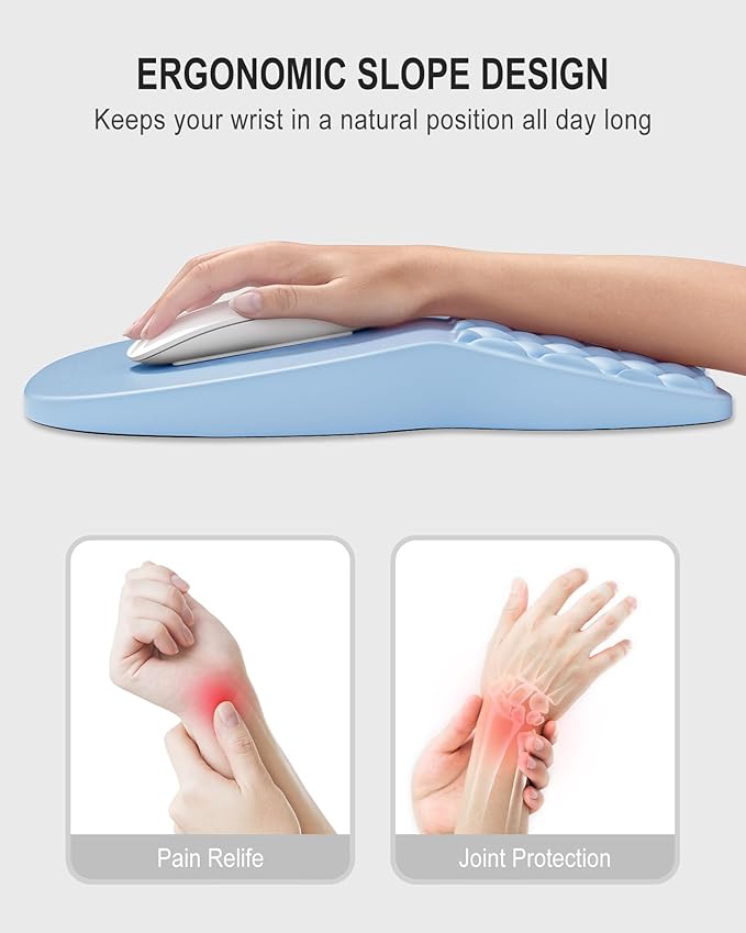 - Ergonomic Slope Design: The innovative 8-degree slope keeps your wrist and palm naturally straight, which can reduce pressure and pain on your wrist caused by prolonged inverted mouse usage, and improve carpal tunnel syndrome (CTS)