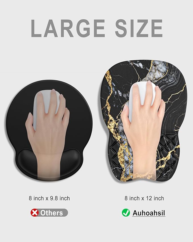 Auhoahsil Ergonomic Mouse Pad with Wrist Rest, Comfortable Slope Computer Mouse Mat with Wrist Support, Memory Foam Filling, Non-Slip Silicone Base, Pain Relief for Gaming Work, 8" x 12", Black Marble