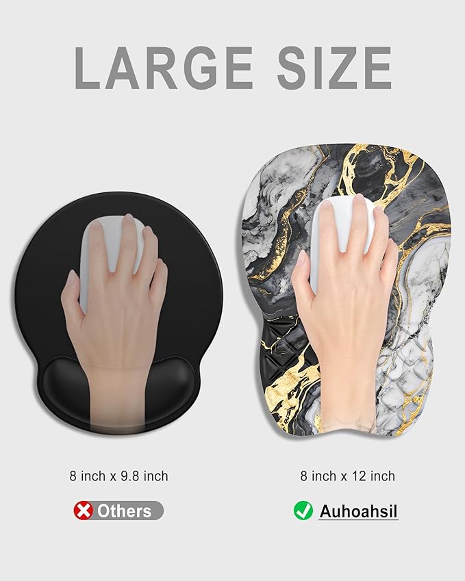 Auhoahsil Ergonomic Mouse Pad with Wrist Rest, Comfortable Slope Computer Mouse Mat with Wrist Support, Memory Foam Filling, Non-Slip Silicone Base, Pain Relief for Gaming Work, 8" x 12", Gray Marble