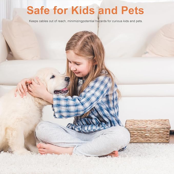 - ✅【Advanced Safety & Protection】This cord organizer box features a child-safe lid that protects cords from kids and pets while preventing dust accumulation, drastically reducing electrical risks around power strips and surge protectors.