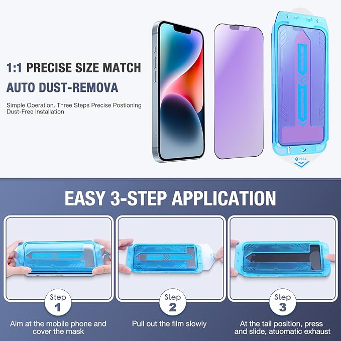 - Auto Dust Removal & Easy Alignment: The screen protector is designed with advanced auto dust removal and self-aligning technology to ensure a flawless,bubble-free installation every time. Simply place the alignment frame on your phone,pull the tab gently,then press and slide to push out any remaining air. The process is quick and hassle-free. For the best results,we recommend watching our step-by-step installation video before getting started