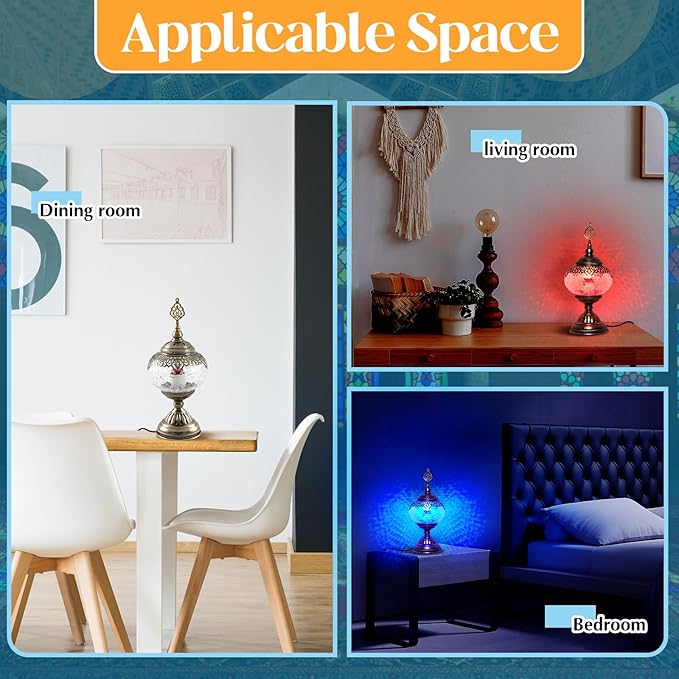 - Light Up Every Space: Whether your home decor is modern, traditional or bohemian, this turkish moroccan desk lamp complements every style. It is fit for bedside tables, desks or any small space that needs a little color and light