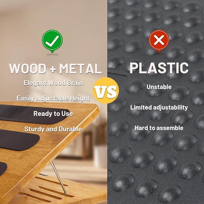 - 【Solid Wood & Steel Footrest】Natural rubberwood with unique wood grain meets stainless steel frame, offering sturdy under-desk support. The minimalist design enhances workspace aesthetics while providing lasting durability for home and office use.