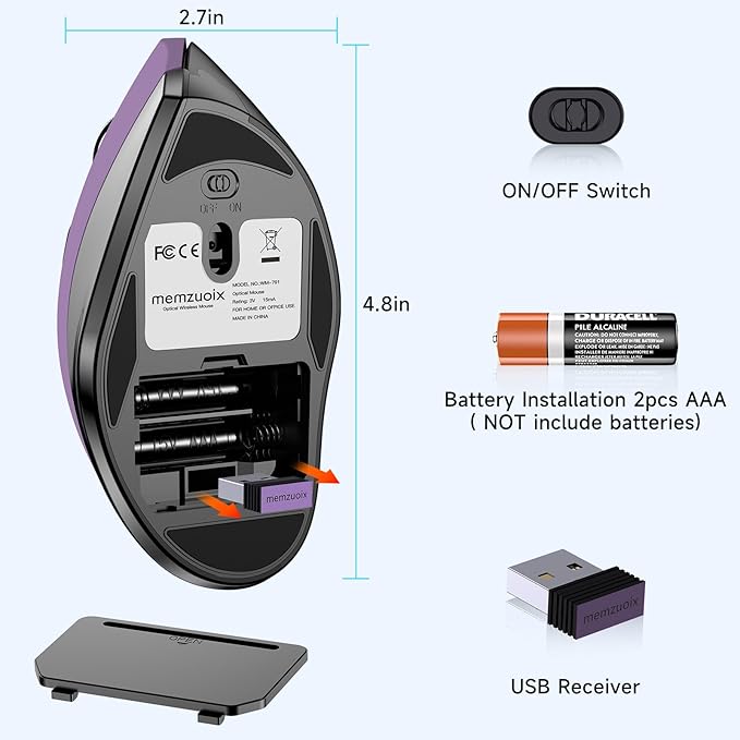- 【2.4G WIRELESS, EASY TO USE】The USB receiver is conveniently stored in the battery compartment—just remove it and install 2*AAA dry batteries (batteries not included) to get started. It’s truly plug-and-play, no complicated setup needed. For energy efficiency, the mouse automatically enters sleep mode after 7 minutes of inactivity. Simply click any button to wake it up instantly.