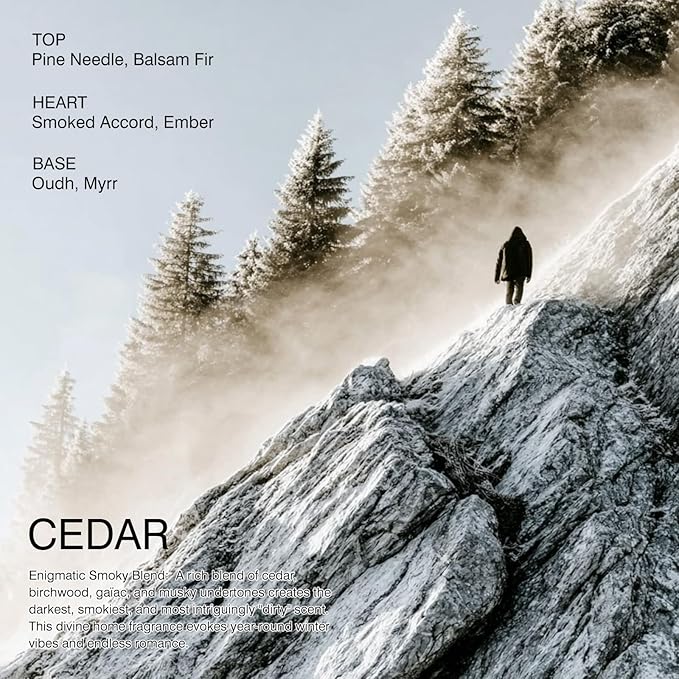 - Enigmatic Smoky Blend: A rich blend of cedar, birchwood, gaïac, and musky undertones creates the darkest, smokiest, and most intriguingly "dirty" scent. This divine home fragrance evokes year-round winter vibes and endless romance.