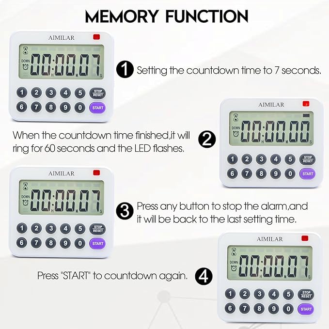 - [ Auto Shut-off & Recall on Reset ] - The timer will turn off automatically after about 1 minute, so batteries are conserved. 3 ways to place the timer: Magnet, stand or hanger allows you to choose where you want to put it.