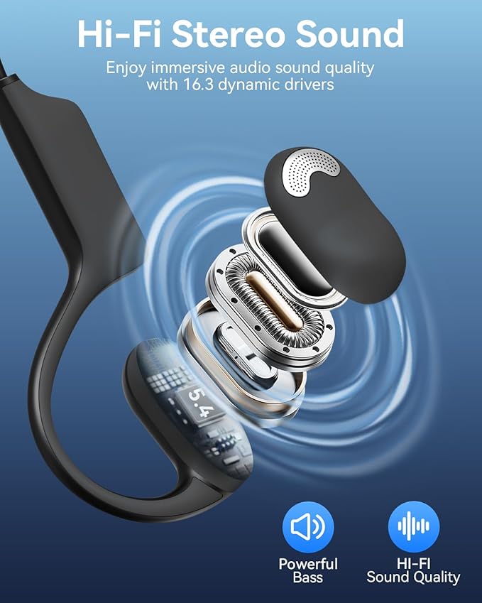 - HI-FI Stereo Sound: Our headphones with noise cancellation mic adopt 15mm speakers and enjoy immersive audio with great sound quality. Whether you're in a meeting, on the phone, or exercising, V3 open ear headphones provide a premium listening experience with exceptional sound clarity and depth.