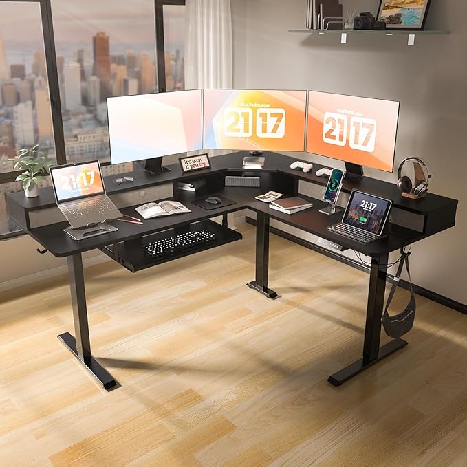 - ERGONOMIC L-SHAPED DESK: Extend your workspace with this L-shaped desktop that provides room for separate work and personal task areas. You can position your chair in the corner with a desktop on either side to rest your arms