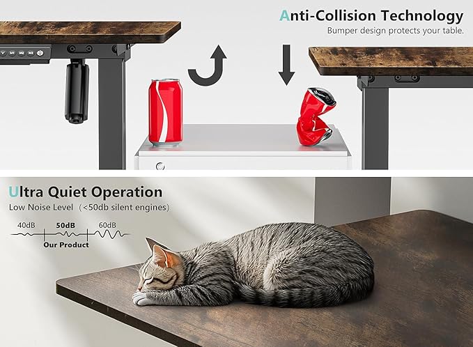 - Perfect Height, Made Simple: Set the desk so your elbows are at 90°, your screen’s at eye level, and your feet are flat