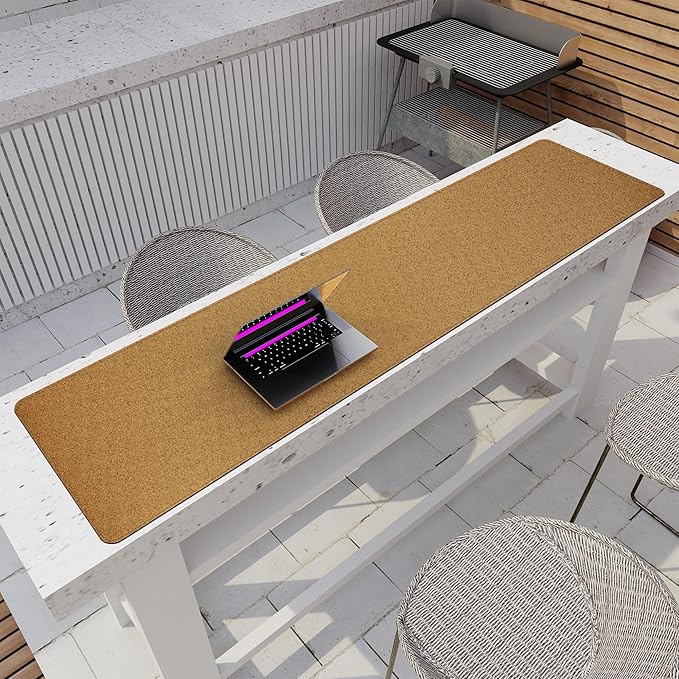 - Dual-Sided Design: The smooth PU leather surface of this long desk mat protects the tabletop while ensuring precise control during play, while the natural cork base adds friction to keep this full desk mat firmly in place, even when in use.