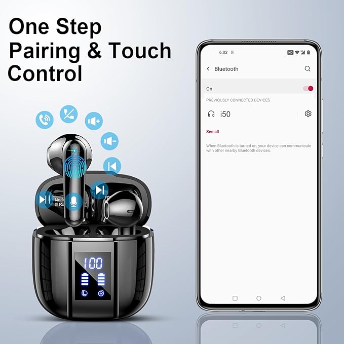 - Bluetooth 5.4 Stable Connection:Stay effortlessly connected with cutting-edge Bluetooth 5.4 technology engineered into these advanced wireless earbuds. Experience incredibly stable signal transmission—30% stronger anti-interference—for flawless, drop-free audio. These versatile Bluetooth headphones instantly reconnect when the case opens, with ultra-low latency perfect for immersive gaming, smooth movies, and crystal-clear calls. Never miss a moment of your audio journey.