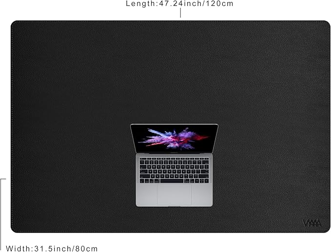 Vyaaa 47.2"x31.5" PU Leather Large Desk Mat (Black) - XXL Extended Mouse pad, Office Desk Protector, Non-Slip Computer Desk pad for Office, Gaming, Home