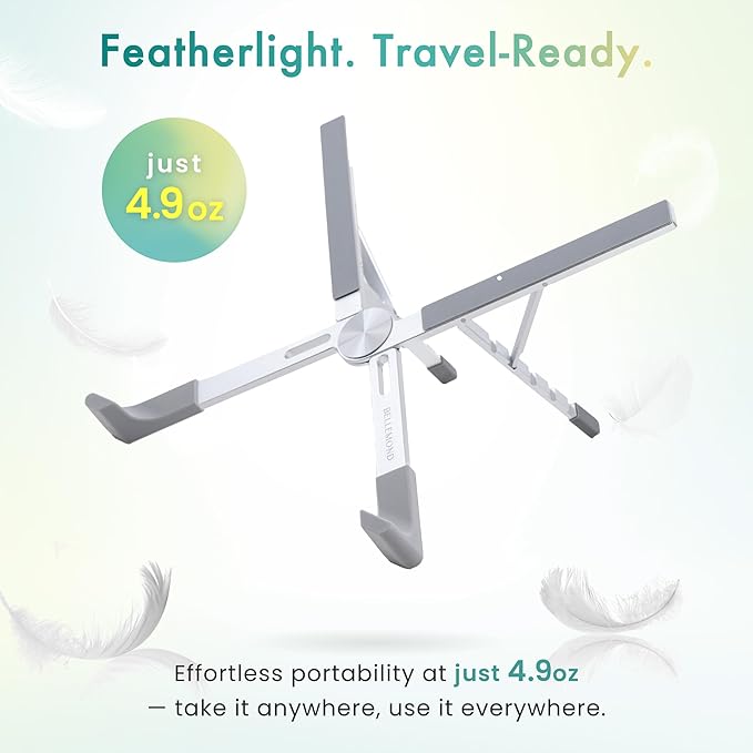 - 🍃Ultra-Lightweight & Durable Premium aluminum body weighs under 140g / 4.94oz. Sleek, sturdy, and built as a foldable laptop stand for everyday use.