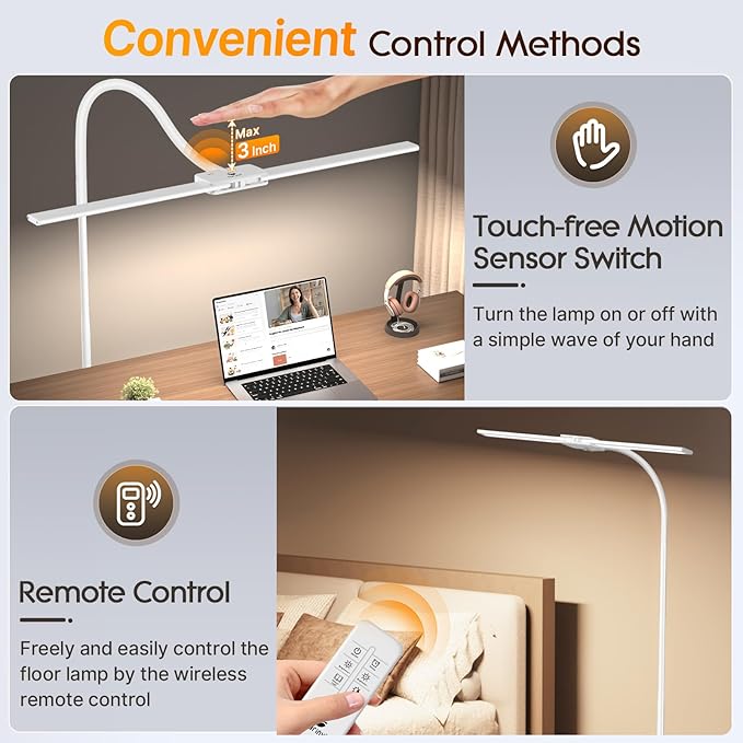 - š§š¼šš°šµ-ššæš²š² šš²ššššæš² š¦š²š»šš¼šæ š¦šš¶šš°šµ & š„š²šŗš¼šš² šš¼š»ššæš¼š¹ - Crafted with a distinctive touch-free motion sensor switch, you can effortlessly turn the LED floor lamp on/off by simply waving your hand without having to leave your seat. This modern floor lamp also features a remote control to adjust the color temperature and brightness of the lighting, timing and reading mode. The remote control features a magnetic design for attachment to standing lamp poles, keeping it easily accessible.