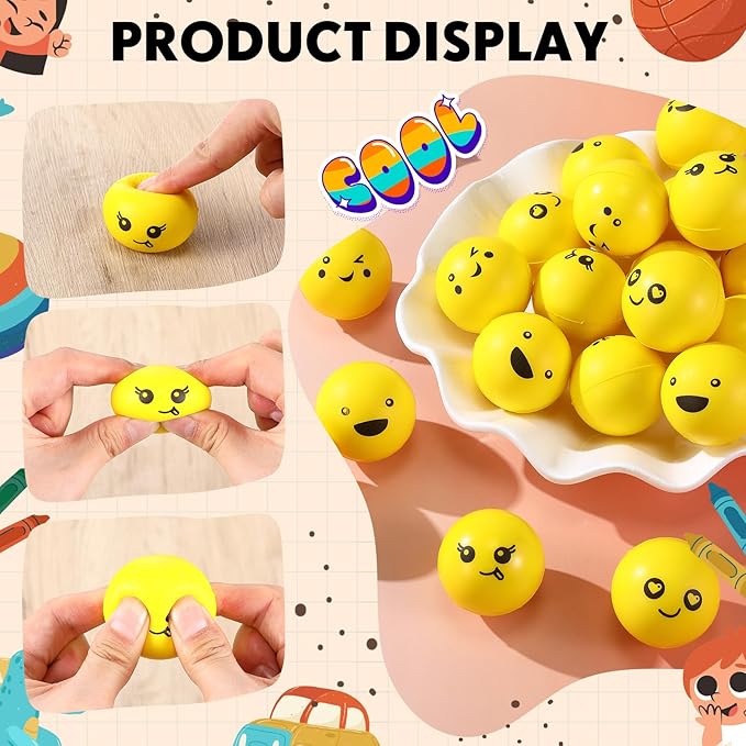 - Ample Amount: our funny mini stress ball package includes a generous 50 round squeeze balls with various expressions in 5 styles; Suitable for relieving stress or packing in back to school party favors, these stress balls offer laughter for kids, fulfilling the demand for stress relieving tools with a touch of humor