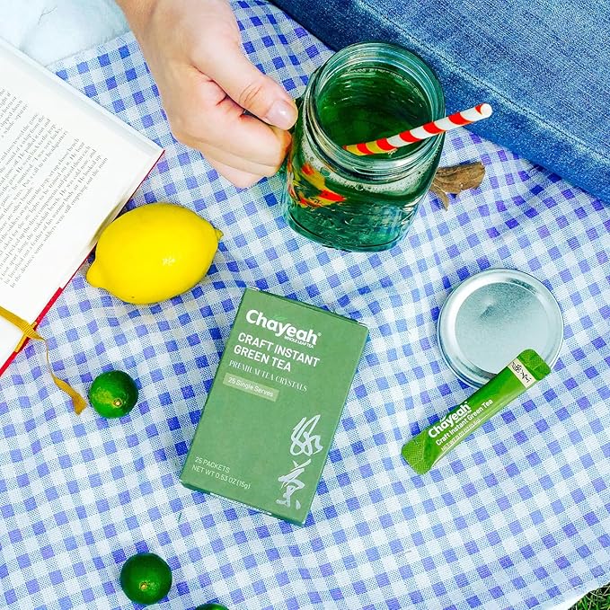 CHAYEAH, Craft Instant Green Tea, Quick Brew Tea Crystals, No Sugar, Natural Caffeine, Hot or Cold (25 Packets)