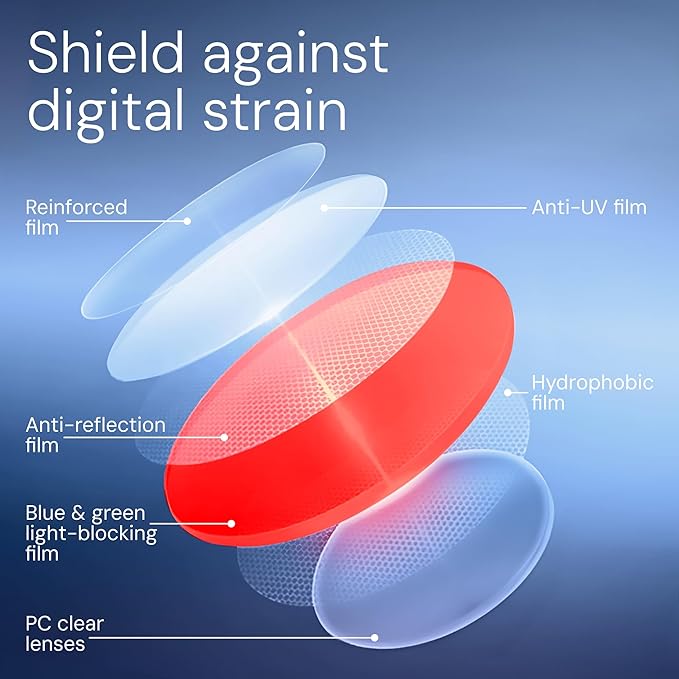 livho Sleep Glasses for up to 99.9% Blue Green Light Blocking for Computer Gaming, Dual Coatings Red Lens, for Women & Men