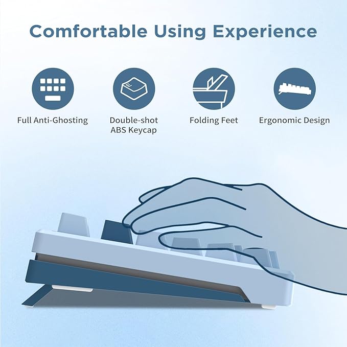 - ใ๐ ๐๐น๐๐ถ-๐๐ฒ๐๐ถ๐ฐ๐ฒ ๐๐ผ๐ป๐ป๐ฒ๐ฐ๐๐ถ๐ผ๐ปใFG98 wireless mechanical keyboard provides three connection methods, including Bluetooth 5.0, 2.4GHz wireless mode, and USB wired mode. It can be connected to up to five devices at the same time, and switch between them easily by FN+ combination keys. No limits about your keyboard connection to meet the needs of work, gaming, and study.