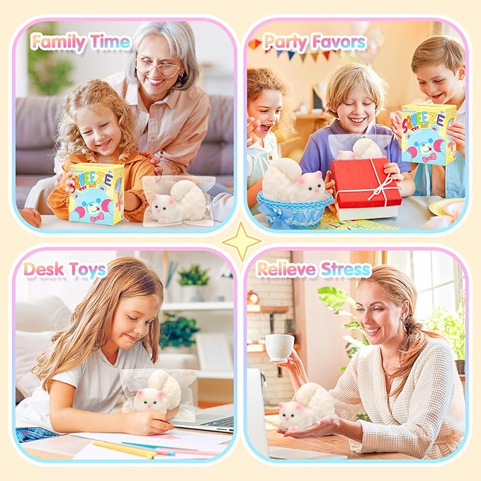 - Versatile Party Favor: Cute cat squeeze toy is perfect for birthday celebrations or parties, offering stress relief while adding a touch of cuteness, and make great party favors or goodie bag stuffers for children, ensuring every guest has a memorable gift to take home