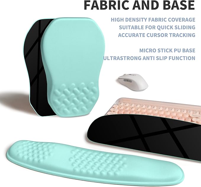 - 【Ergonomic Set】Wave Keyboard Wrist Rest x1(17.1x3.7 inch, 435x95mm) and Massage Slope Mouse Pad Wrist Support x1(11.8x7.9 inch, 300x200mm), ergonomic curvature design optimization, more in line with the natural position of the shoulder during work, alleviates carpal tunnel syndrome and wrist pain