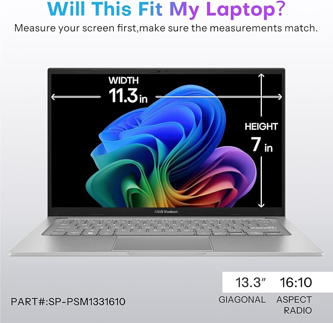 - Compatible Devices:Compatibility for 13.3-inch Laptops: Before placing an order, please measure and confirm the width and height of your laptop screen. Width: 11.3 inches (287 mm), Height: 6.9 inches (177 mm), Diagonal: 13.3 inches (337 mm). It is designed to fit monitors of HP, Lenovo, Dell, Acer, Asus, Samsung, Envy, Toshiba, and other 13.3-inch laptop brands.