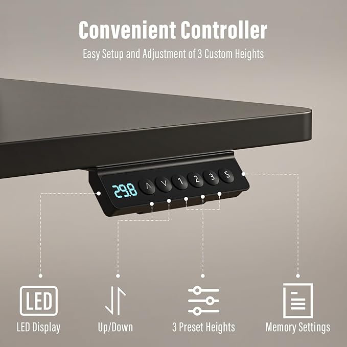 - 【Ergonomic Home Office Desk】:This standing office desk rediscovers movement with one-touch height presets (28" - 47") and a near-silent motor (<50dB). The standing desk's anti-fatigue design encourages micro-movements, proven to improve focus by 23% while reducing the risk of prolonged sitting