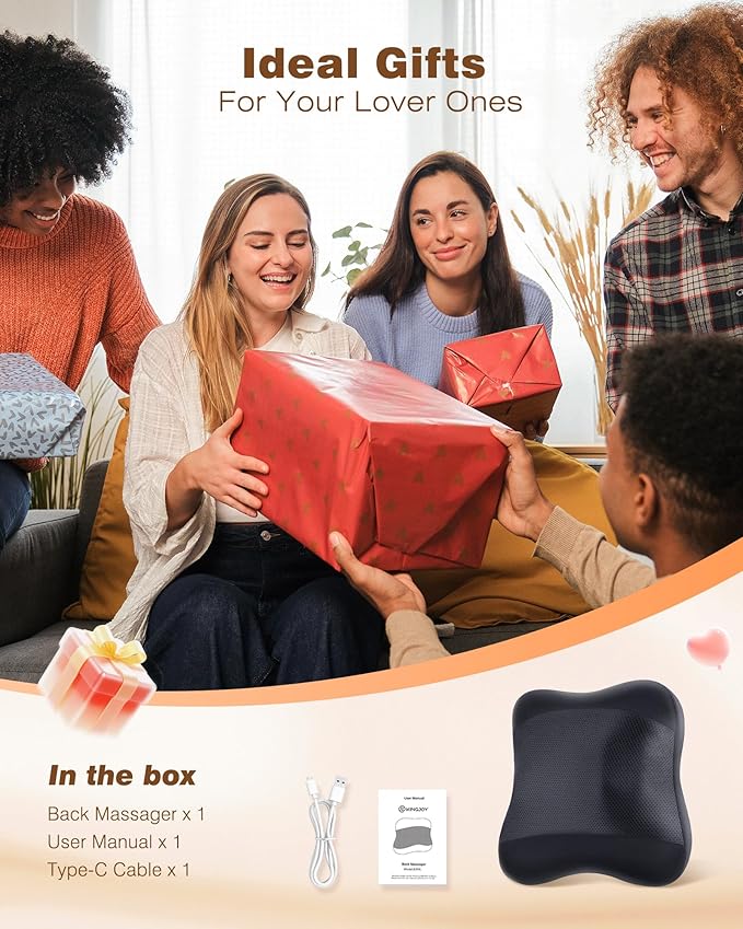 - 【Perfect Gift for Family & Friends】Made with skin-friendly fabric and a long-lasting motor, this neck and back massager makes the perfect gift for women, men, mom, dad, wife, husband, or friends on birthdays, Christmas, Mother's Day, Father's day and holidays—bringing comfort and care.