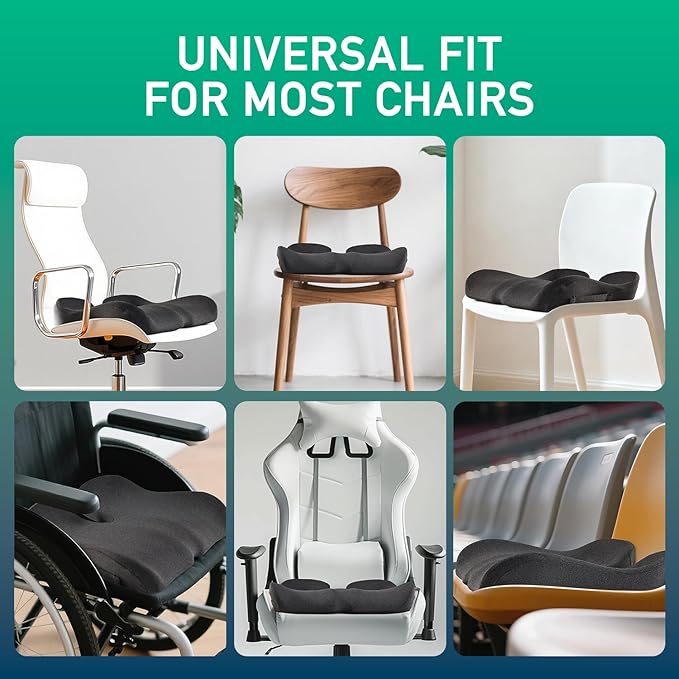 - ๐๐๐ซ๐๐๐๐ญ ๐๐จ๐ซ ๐๐จ๐ง๐ ๐๐จ๐ฎ๐ซ๐ฌ ๐จ๐ ๐๐ข๐ญ๐ญ๐ข๐ง๐ , ๐๐จ๐ฆ๐ฉ๐๐ญ๐ข๐๐ฅ๐ ๐ฐ๐ข๐ญ๐ก ๐๐๐ซ๐ข๐จ๐ฎ๐ฌ ๐๐ก๐๐ข๐ซ๐ฌ๏ผWith dimensions of 16.1 x 18.3 x 3.2 inches, this cushion is designed to fit most standard chairs, such as office chairs, gaming chairs, dining chairs, and more. Whether you're working from home, enjoying a gaming session, or sitting at the dining table, this cushion is the ideal solution for long sitting sessions, helping to alleviate pressure on your spine and tailbone, improving posture, and reducing discomfort. Please check the dimensions of your chair to ensure compatibility before purchasing.