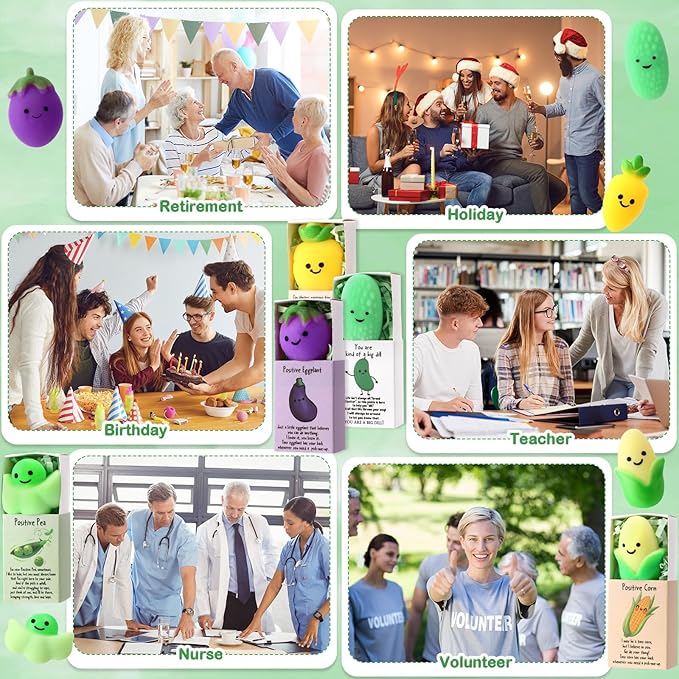 - Meaningful Gifts: our stress relief balls feature vegetable design with positive messages to show support and gratitude to employees, suitable for giving to coworkers, employees and friends as office party favors or rewards on many occasions such as birthdays, appreciation week, mental health month, graduation, Christmas, etc