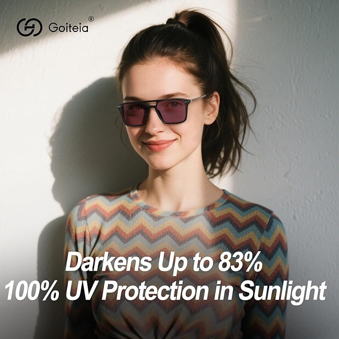 - All-in-One Solution for Indoor & Outdoor Use, Goiteia FL-Rose glasses block harmful 480–520 nm blue-green light from indoor screens and provide 100% UV400 protection outdoors, shielding your eyes from harsh sunlight. Ideal for those sensitive to indoor/outdoor lights & screens.