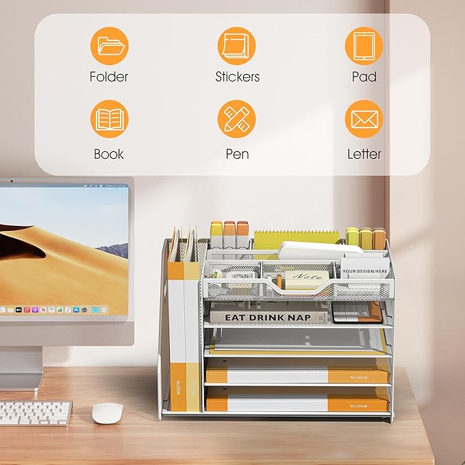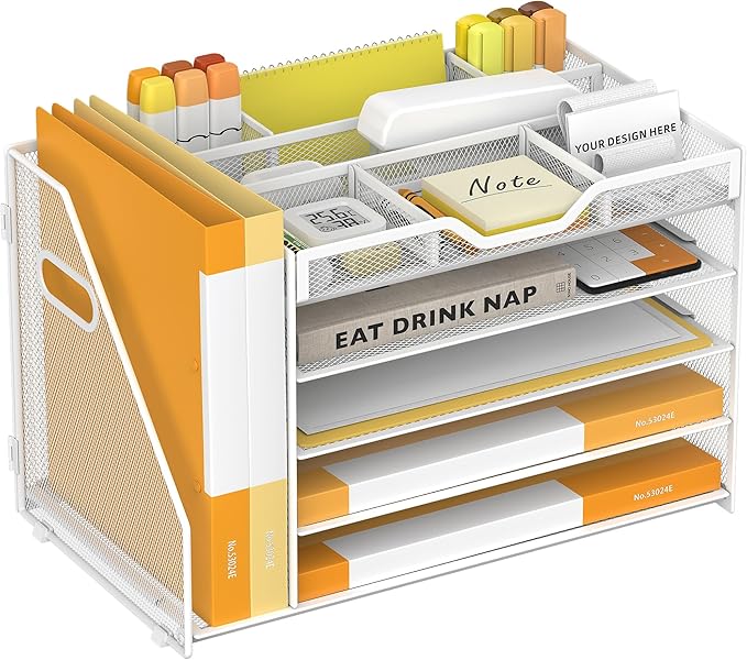 - Quality Materials and Superb Craftsmanship-Featuring a lightweight and durable metal mesh construction with a sturdy frame and powder-coated finish that ensures the desktop file manager won't bend or break when holding large quantities of paper, files and books, the file manager has a smooth finish that complements the office's work decor