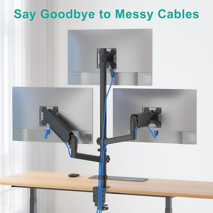 WALI Triple Monitor Mount for 13-32 inch Screens, Taller 3 Monitor Desk Mount, up to 19.8lbs, 31.9 inch Height Max, Adjustable Gas Spring Triple Monitors Stand, VESA 75/100mm (GSDM003S), Black