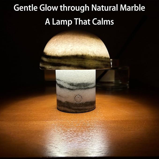 - Natural Stone Beauty - Roman Travertine, Mist White Marble, or Cloudy Jade: Crafted from 100% natural stone, each mushroom lamp showcases unique textures and patterns. No two lamps are the same—every piece is one-of-a-kind, just like your home.