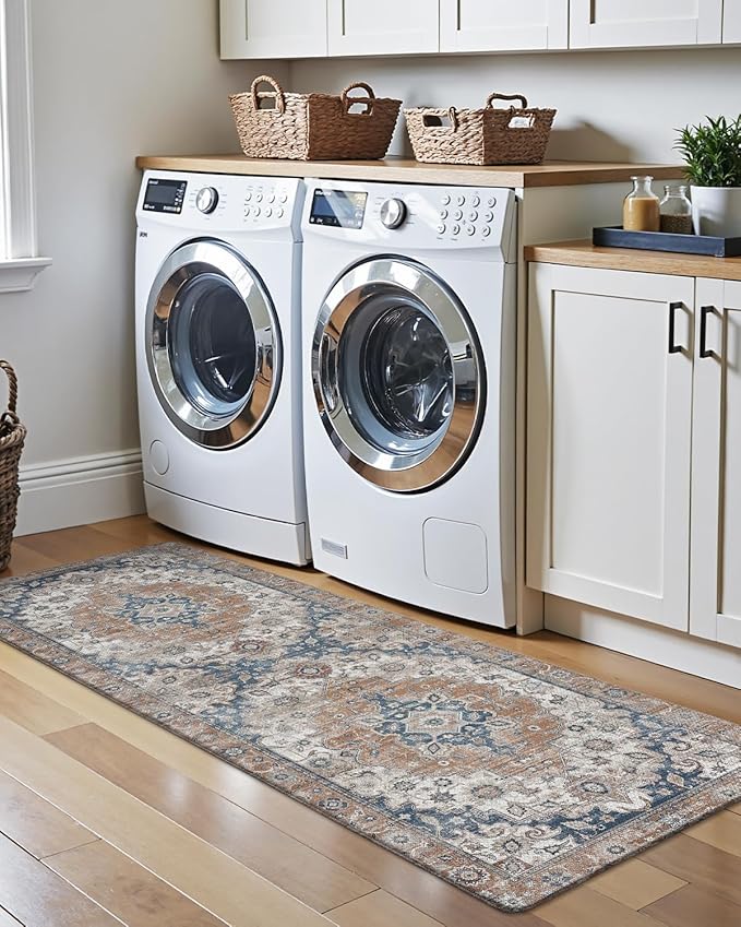 - Vintage Elegance and Practical Design: Premium kitchen rug combines decorative patterns, nostalgic tones, and classic materials. The kitchen runner can quickly rebound, will not flatten with long time use like others products