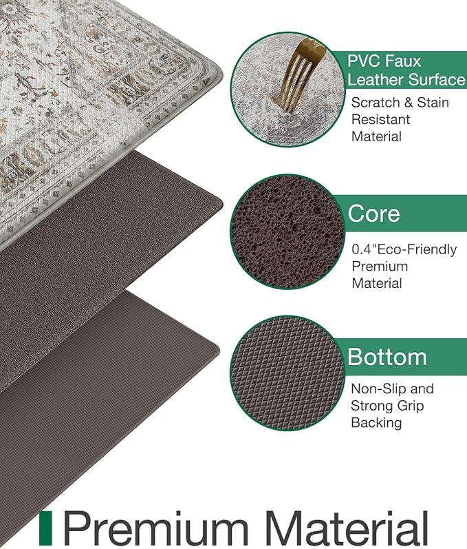 - Easy to Clean: Our heavy-duty kitchen rug features a waterproof, oilproof, and stain resistant PVC surface. Dense material stops liquids from seeping in, making cleanup quick and simple—just wipe with a damp cloth or hand vacuum for effortless maintenance