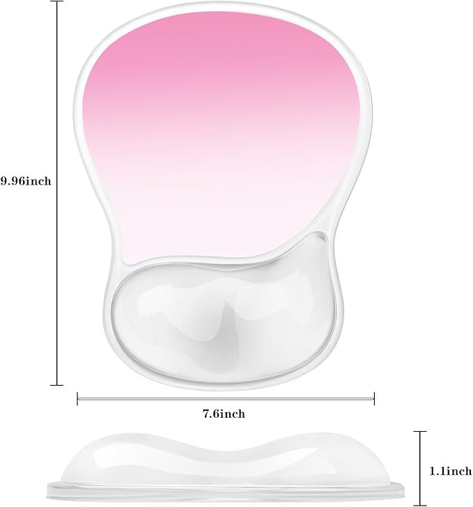 Mouse Pad with Wrist Rest,Ergonomic Mouse Pad with Comfortable Gel Wrist Rest Support and Non-Slip PU Base for Easy Typing Pain Relief, Durable and Washable (Transparent Pink Gradient)