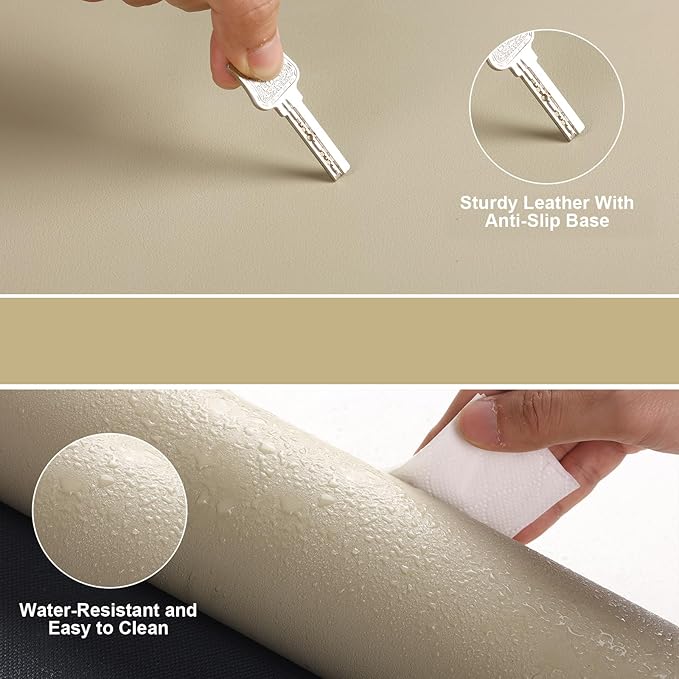 - Wear-resistant leather base with anti-slip particles ensures long-lasting usability.A practical desk pad for your keyboard and mouse, also suitable as a table surface protector.