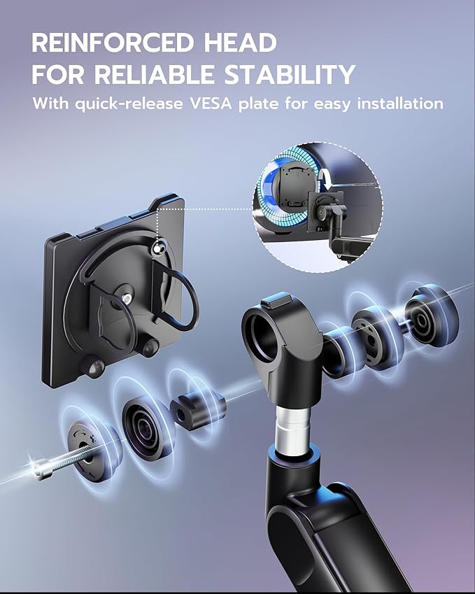 - [Effortless Angle Adjustment] Unlike common friction-based designs, our monitor arm features an advanced bearing head structure that allows smoother and easier tilt adjustments—especially when angling heavy monitors upward. This innovative design reduces effort and provides lasting stability, even under maximum load.