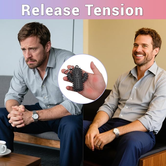 - High Quality Materials:Premium silicone stress relief toy upgraded with industrial hardware. The spiky grippy stim keychain stays attached to bags/keys, and its smiling ouchies fidget face serves as a gentle desk-side anxiety relief item. Ideal for adult fidget toys seekers