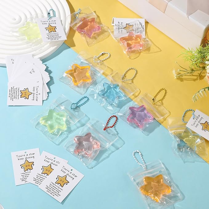 - Uplifting Support Gift: this set includes 30 star theme stress ball keychains with bags (6 colors, 5 of each) and 30 motivational cards; A thoughtful and meaningful way to make recipients feel appreciated and valued