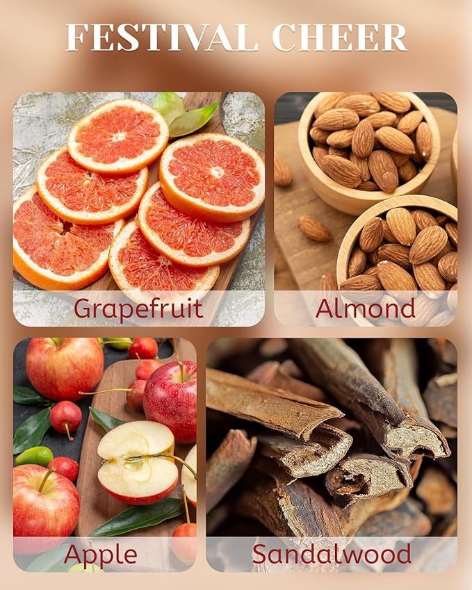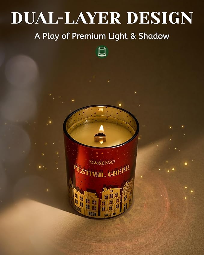 M&SENSE Festival Cheer Wooden Wick 18oz Almond & Apple Scented Clean Natural Soy Wax Candle, 100 Hours Burn Aromatherapy Large Candle for Housewarming Bathroom Bedroom