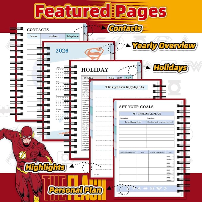 - 【Stylish, Functional & Superhero-Inspired】This superhero-themed spiral-bound planner is the perfect choice for students, professionals, or anyone who prefers handwritten notes. The notebook's design features a unique superhero aesthetic, making it an inspiring gift for work, school, or even as a fun tool for staying organized. It’s the ideal blend of work and play.